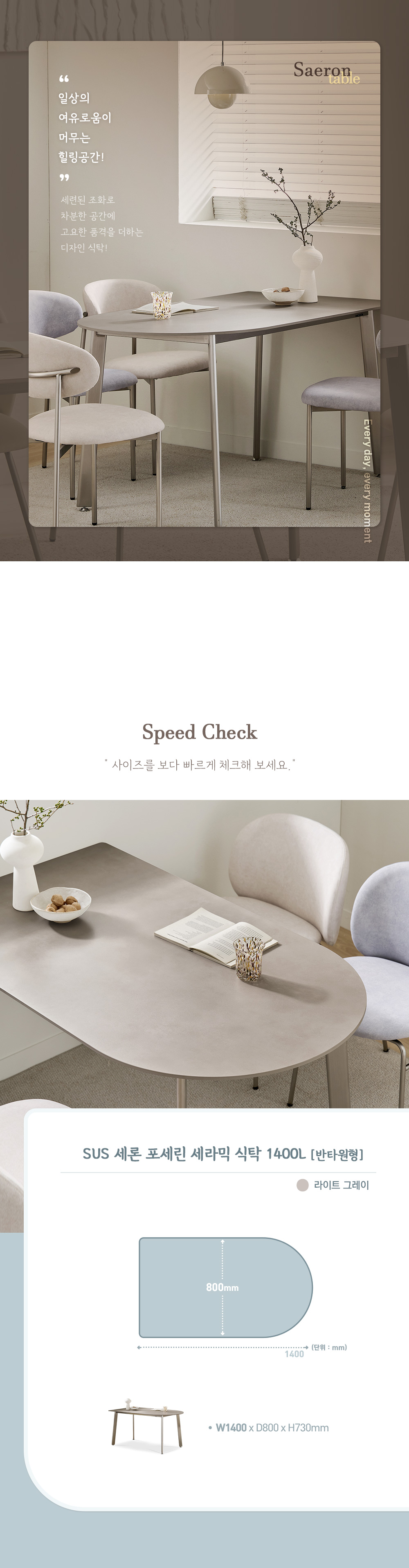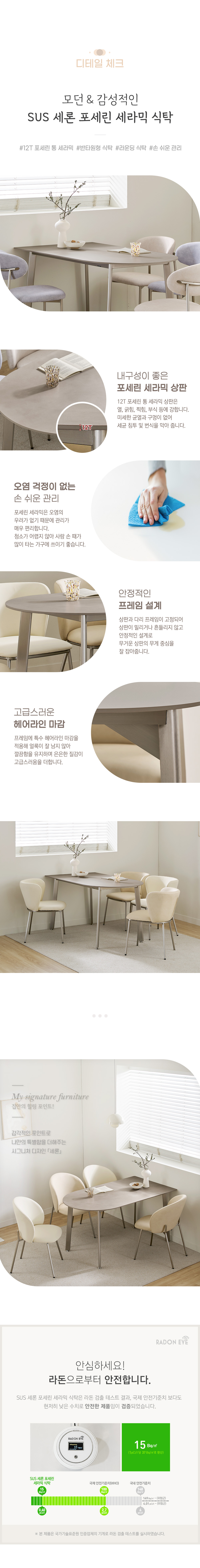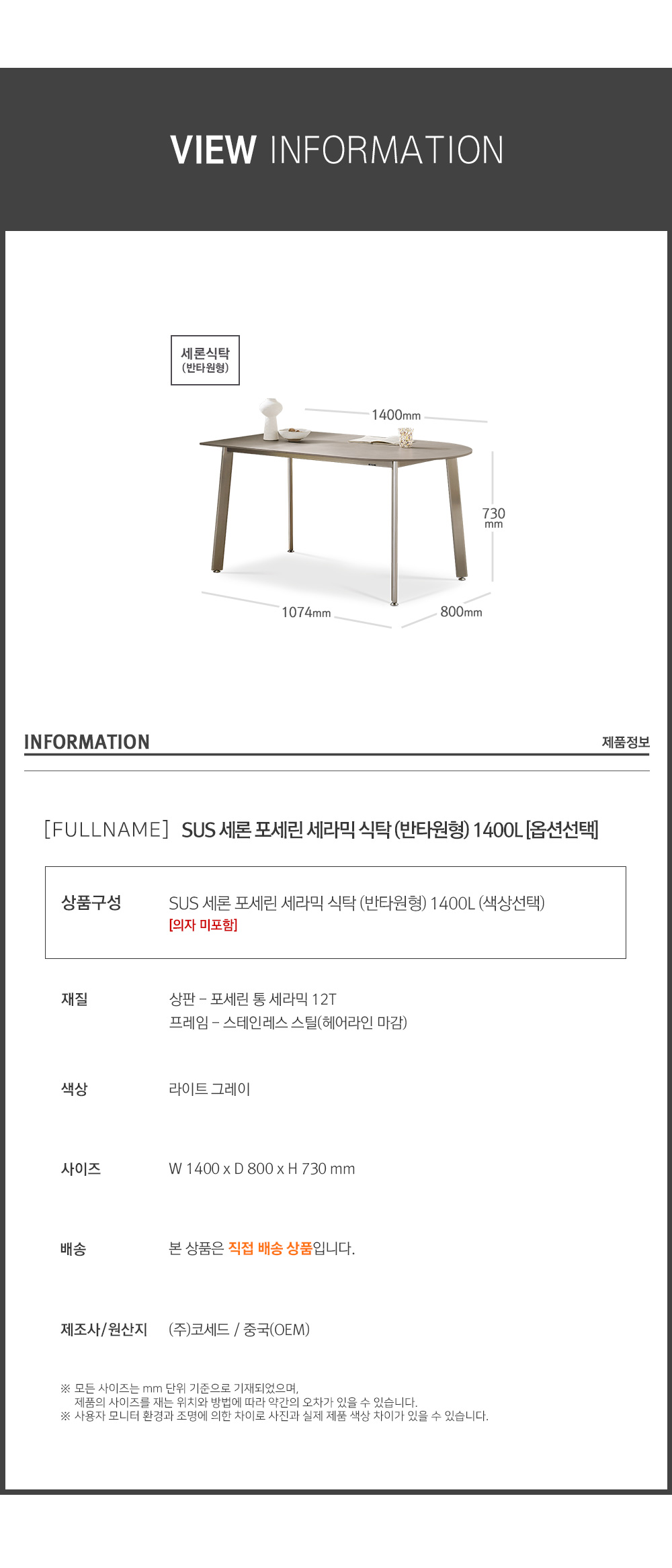 HOME > KITCHEN > 인테리어 식탁 > 4인식탁 > SUS 세론 포세린 세라믹 식탁 반타원형 1400