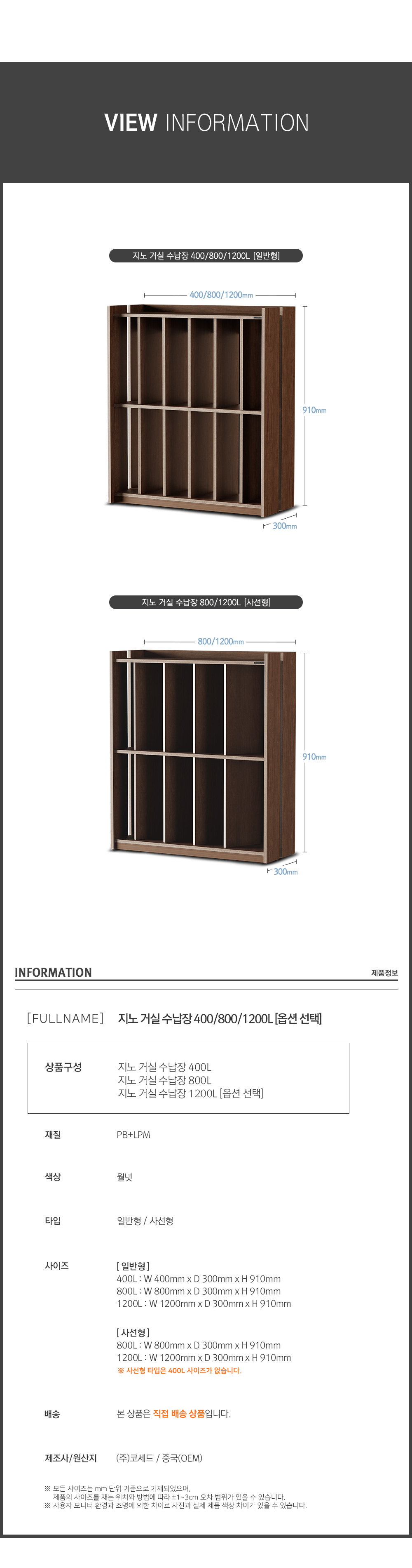 ※ 상품사이즈 치수는 재는 방법과 위치에 따라 1~3cm 오차가 있을 수 있습니다.