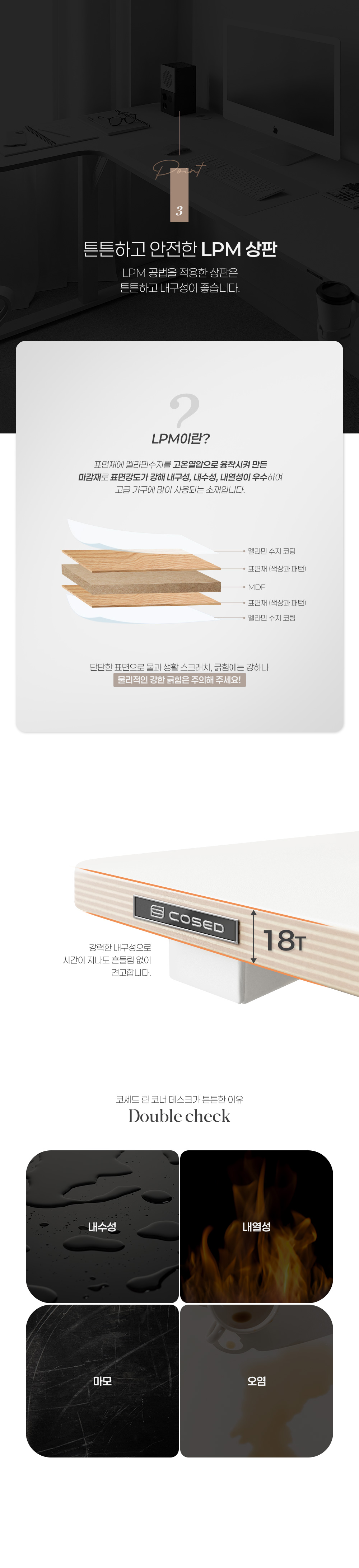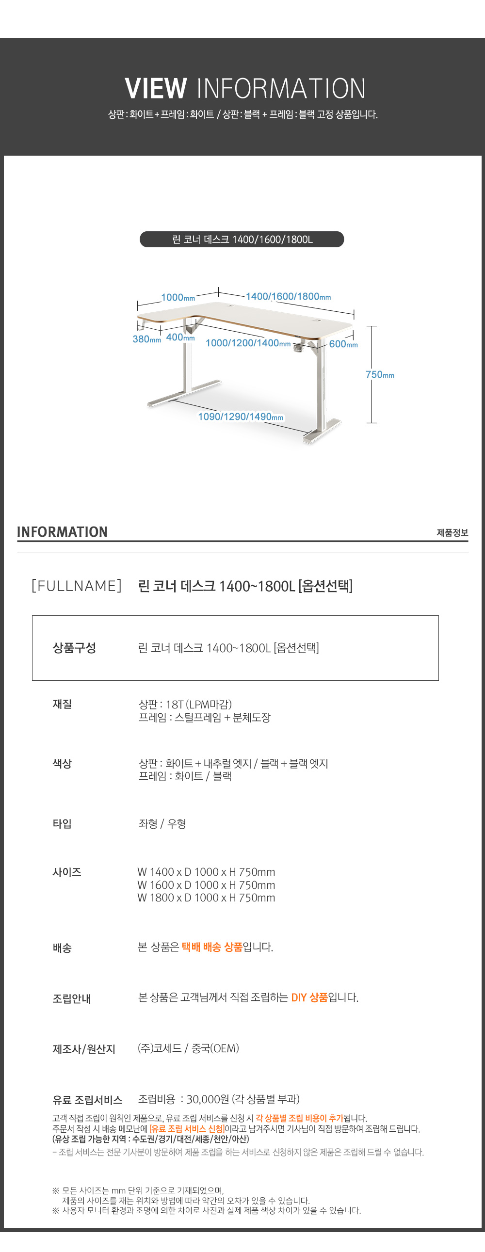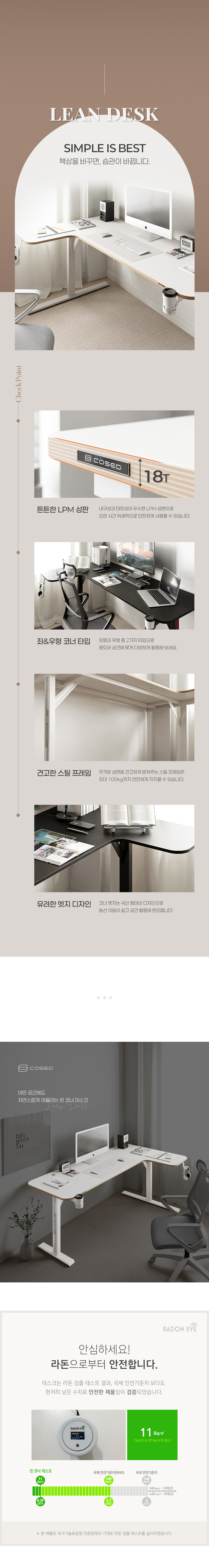 HOME > Home Office > 책상 > 린 코너 데스크 1400 1600 1800 사이즈 (화이트/블랙)