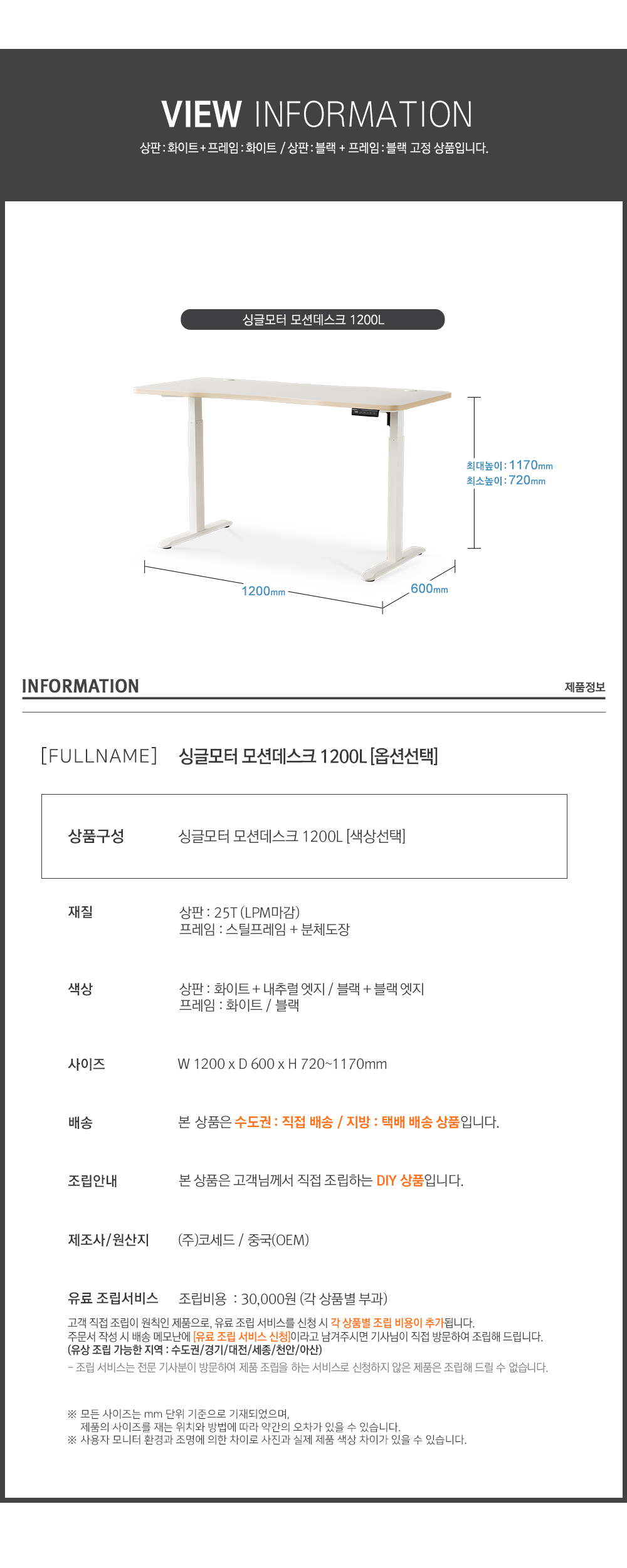 New! 모션데스크 싱글 1200 사이즈 [화이트/블랙]
