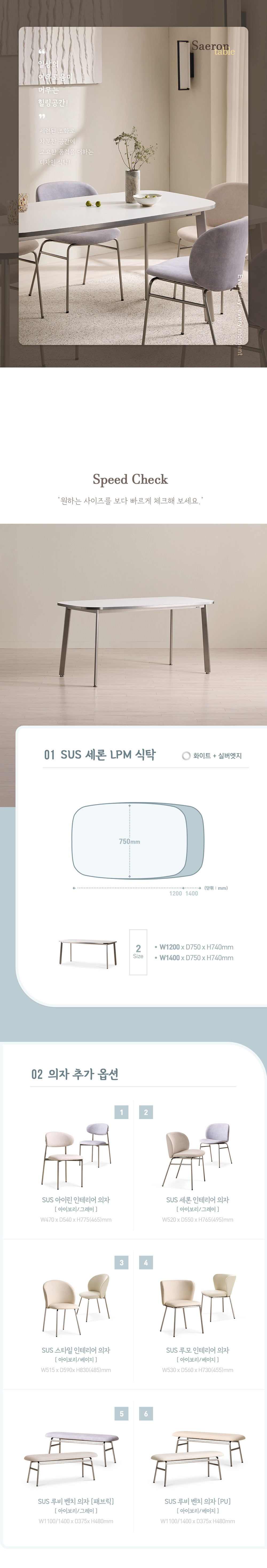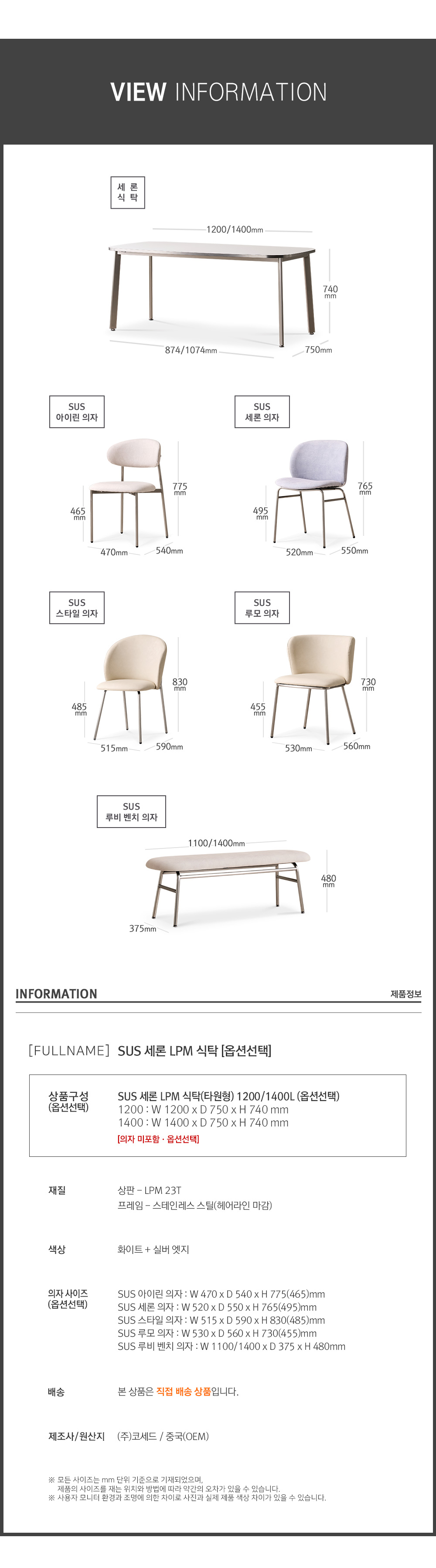 HOME > KITCHEN > 인테리어 식탁 > 2인식탁 > SUS 세론 LPM 식탁 타원형 1200 / 1400L (750)
