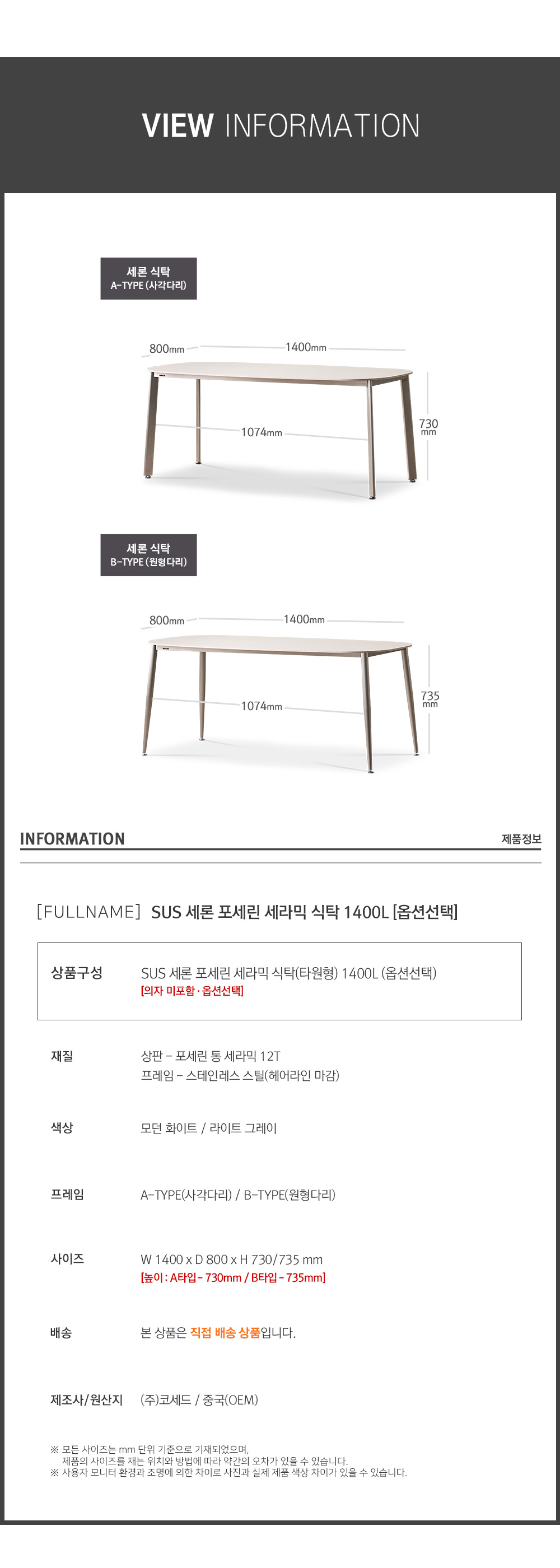 | 다리파손 및 조립상태 이상 | 1년 이내 | 무상수리 |